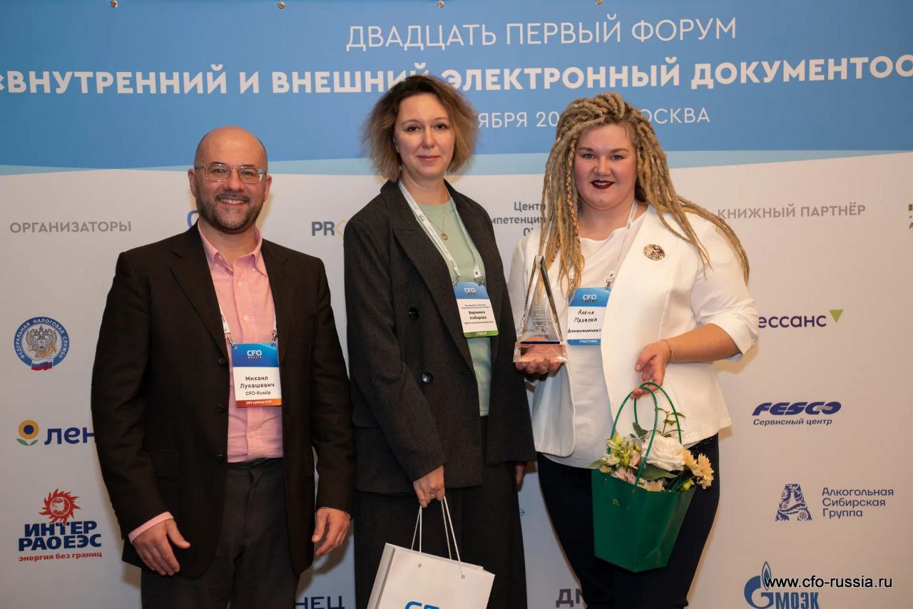 Кроме того, Вероника Кибирева принимала участие в октябрьском 21 форуме «Внутренний и внешний электронный документооборот». Там она поделилась опытом и рассказала, как Группа компаний реализовала проект по внедрению системы ЭДО.