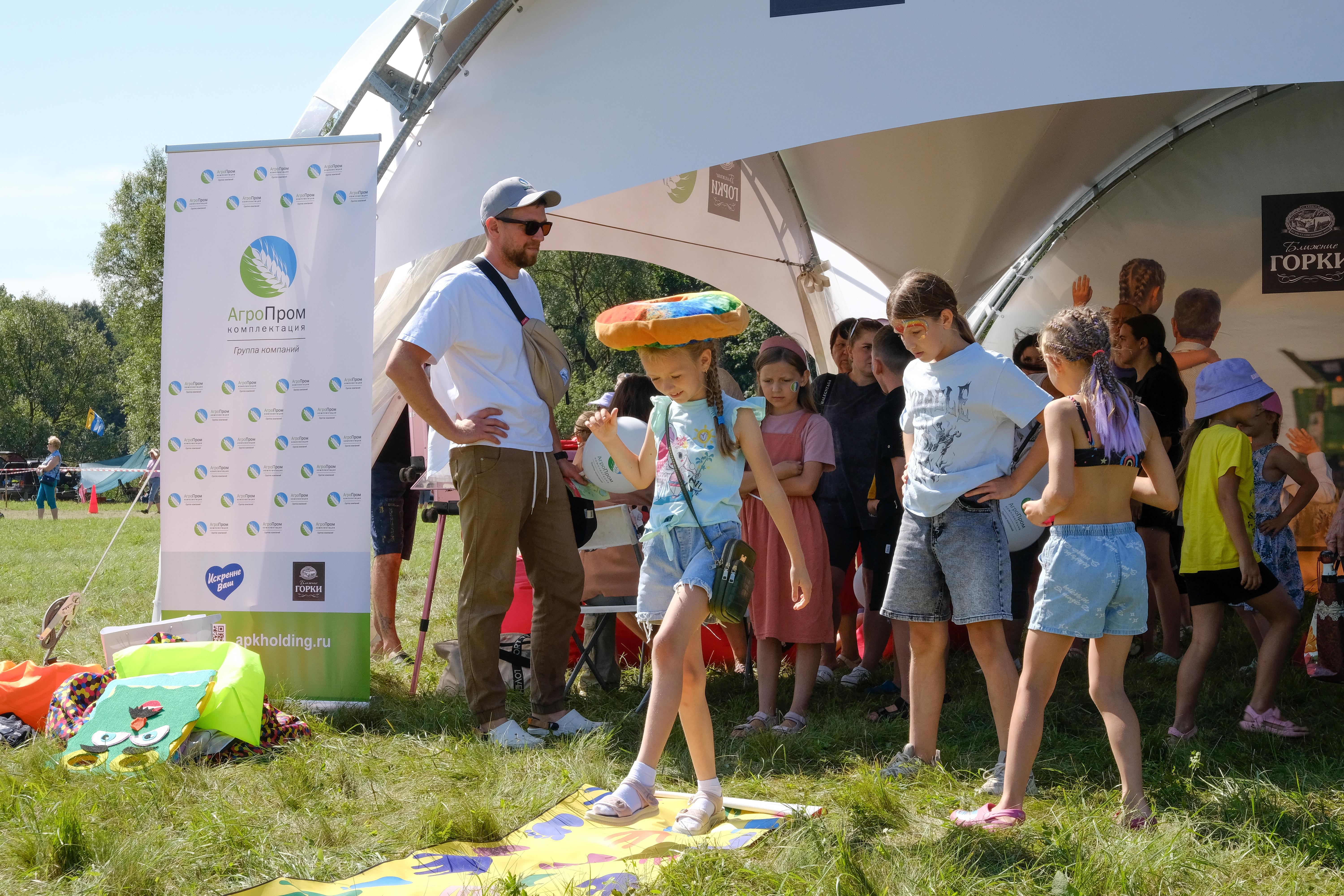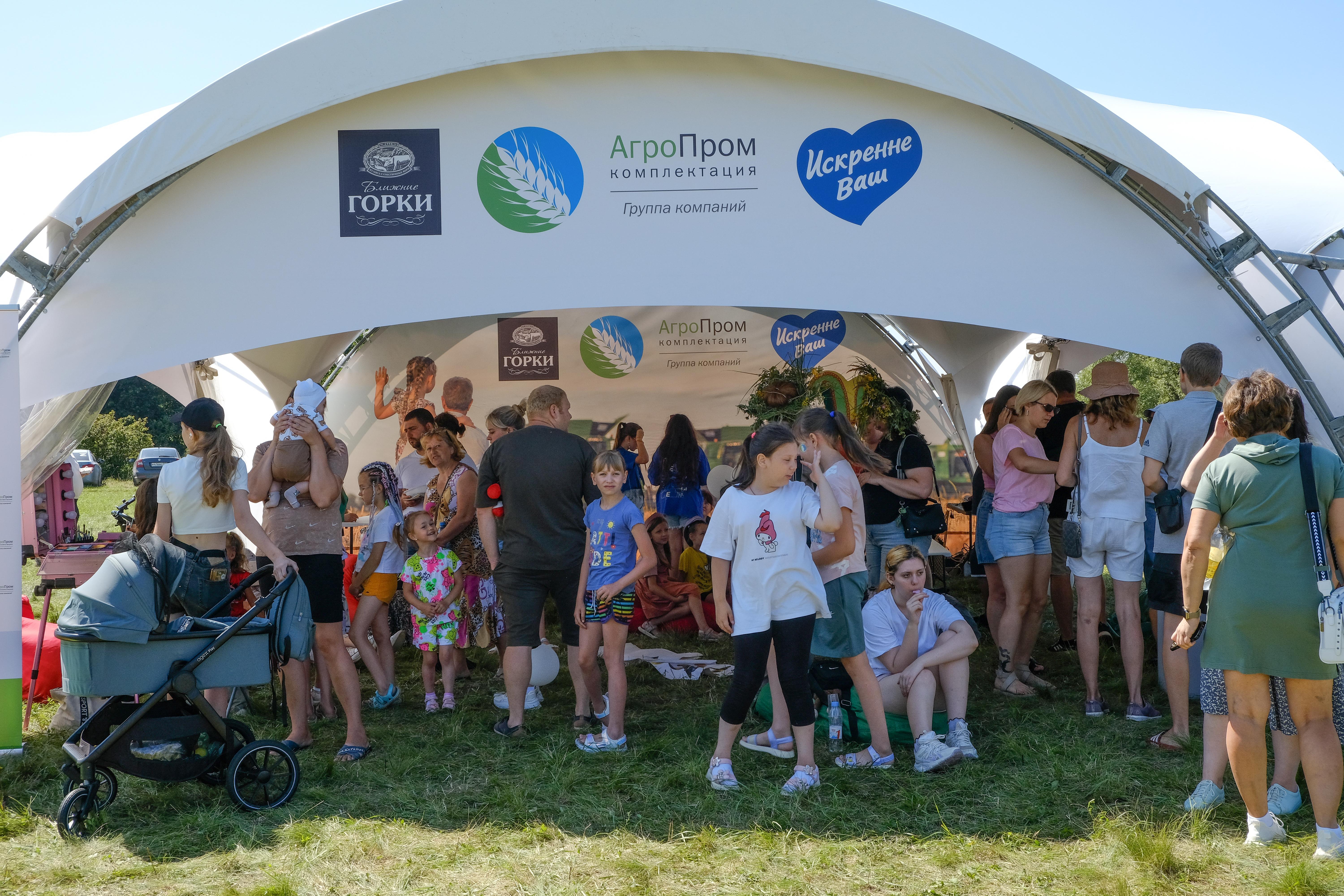 Особой точкой притяжения для сотрудников «Агропромкомплектации» и местных жителей стал брендированный шатёр Группы компаний. Для гостей — и детей, и взрослых — были организованы разнообразные активности: конкурсы, викторины, аквагрим, а также розыгрыши с призами. Победителям вручили полезную сувенирную продукцию с логотипом компании. Праздничное настроение создавали весёлый скоморох и ростовая кукла Свинка. Организаторы позаботились и о зоне отдыха — в шатре и рядом с ним разместили удобные кресла-мешки. Поблизости была установлена тематическая фотозона со стогами сена и яркими ромашками.
